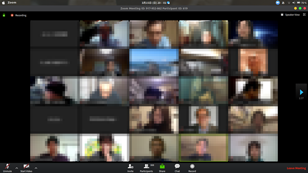 先日700人規模のZOOMミーティング社会実験に参加してきました。まあ海外や地方からの参加者が多いこと。北海道、沖縄といった日本国内の両端からの参加は当たり前。イスタンブールとかバンコクとか、国も時間帯も違う場所から参加されている人から「日本人との議論が楽しい!」と続々と参加。ZOOMのパワーを気付かされる所です。